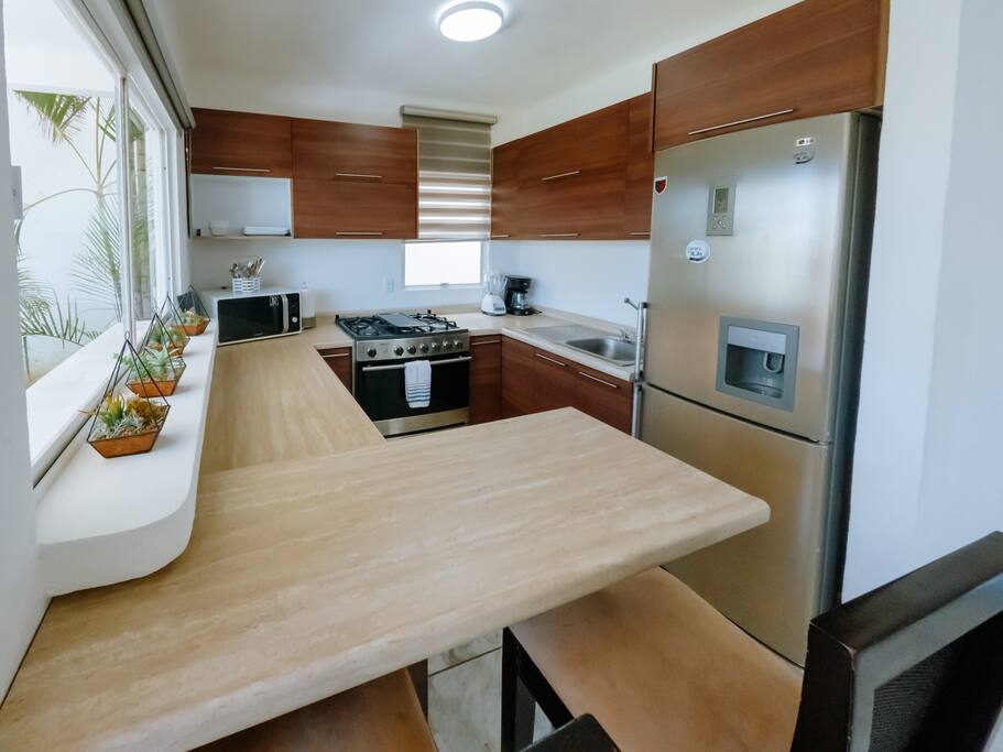 Inside Vista Pelicanos, beautifully furnished house that accommodates 6 people. A perfect fit for families and friends with 3 bedroom and 2 bathrooms, equipped kitchen. Option for daily cleaning or cooking. 100 mts to restaurants and boat tours!